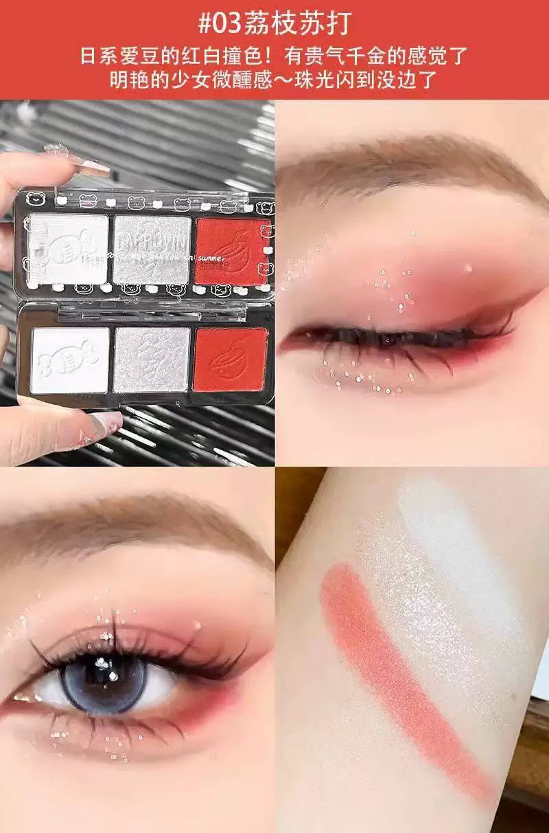 شماره 03 (سودای توت‌فرنگی): رنگ‌های گرم و شاد (قرمز-صورتی و سفید برفی) برای یه آرایش با طراوت و عروسکی.