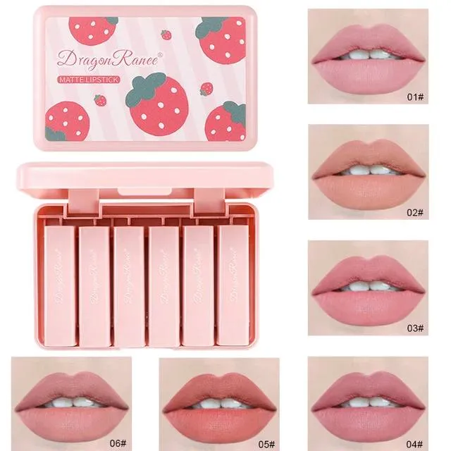 پک رژ لب جامد مات 6 عددی دراگون رانی طرح توت فرنگی