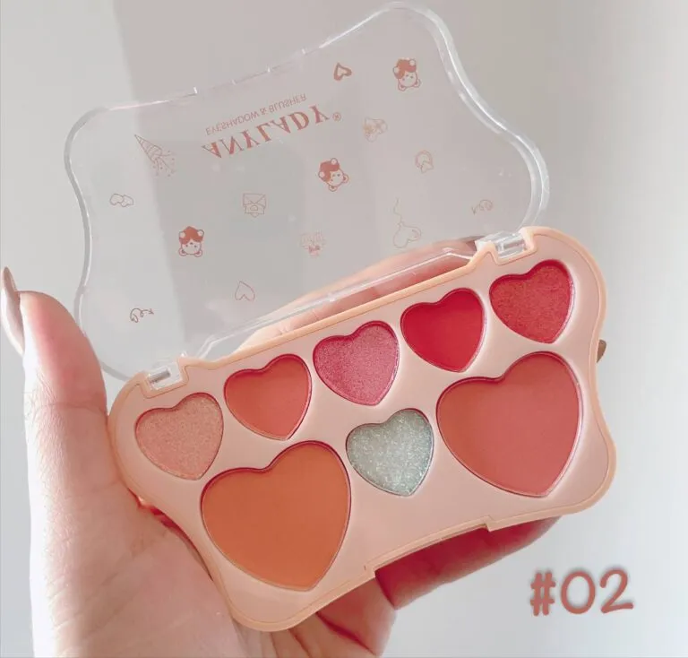 اول از همه بگم که ظاهر این پالت خودش یه دلبریه! با قلبهای کوچیک و بزرگ براق، توی رنگهای دخترونه و فانتزی، انگار از توی داستانهای کارتونی پریدن بیرون. درب شفاف با طرحهای بانمک کارتونی، حس کودک درونتو زنده میکنه!